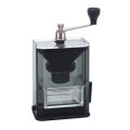 本体横のレバーを倒すことで吸盤が作動し、机に固定できるクリアな外観のコーヒーミルです。 吸盤を使用しなくても底面全体にシリコーンゴムを使用しているので、コーヒー豆を楽に挽くことができます。 本体サイズは本棚にも収まるよう、文庫本サイズを基準にし収納時はハンドルを本体に収納しておくことができます。